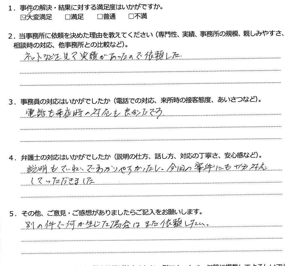 - 説明も丁寧でわかりやすかった。今回の案件にも十分対応して頂きました。